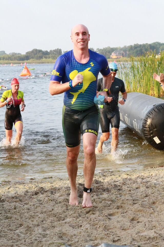 Overall my swim went well. I train in Biscayne Bay with the buoyancy benefits of wearing a wetsuit and salt water. This was a fresh water lake and wasn't wetsuit legal so my swim pace ended up exceeding expectations. This was a unique swim course in the shape of the famous IRONMAN M-Dot. A few years later I got to meet the course designer who shared some good stories as to how this unique design came to be. A story for a later time. There were a lot of swimmers but with the rolling start they were well spread out across the course and it was never too crowded for my comfort. The swim went quickly, and was overall uneventful. Before I knew it I was out of the water and starting the 1/2 mile run through T1. This might have been the only real run of the day.